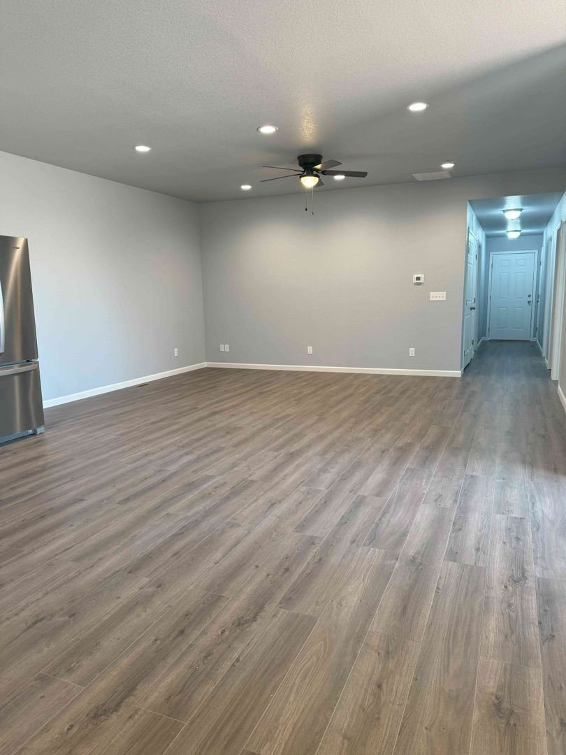 Pueblo West 3 bedroom duplex. 2 bath, 2 car attached garage, large living room, washer and dryer, laminate & tile flooring, partially fenced yard. Cats allowed. Tenant pays Gas & Electric. Tenant maintain their side of yard.